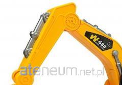 Zabawkowa maszyna budowlana. Wysięgnik teleskopowy zamocowany jest w dwóch pozycjach - transportowej i roboczej, a platforma z wysięgnikiem może obracać się o 360 stopni.