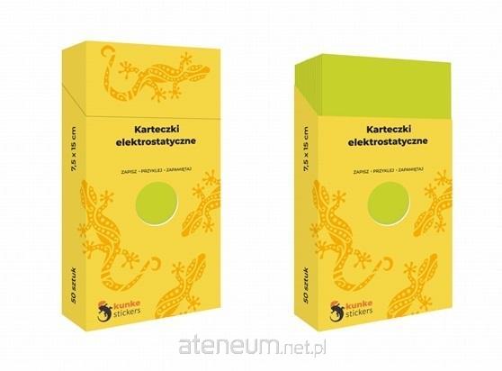 Karteczki elektrostatyczne - to naelektryzowana folia na podkładce papierowej. 50 kartek w pudełku (75 x 150 mm) przyklejają się do wszystkich suchych powierzchni bez użycia kleju.