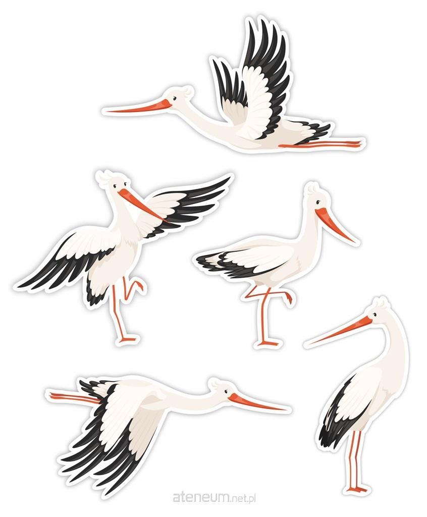 Zestaw składa się z 5 bocianów w różnych pozycjach - idealne do wiosennej dekoracji szkoły i przedszkola.