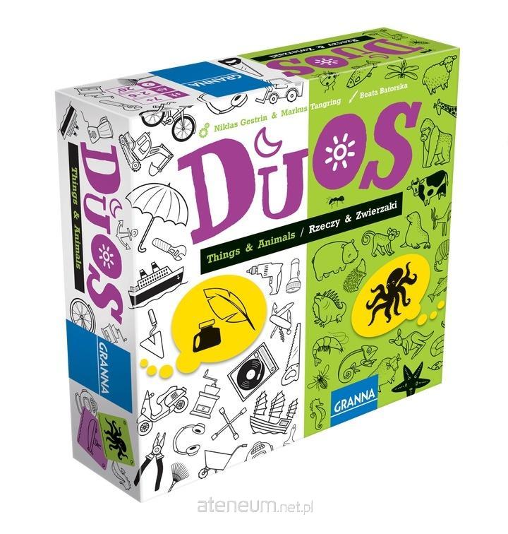 W "DUOS" liczy się kreatywność oraz umiejętność przywidywania skojarzeń pozostałych uczestników rozgrywki. Szybkie rundy i masa ciekawych rozmów nad stołem to właśnie "DUOS", towarzyska gra, która sprawdzi się zarówno w gronie rodziny, jak i znajomych. Jednocześnie na rynku zadebiutują dwa pudełka. Każde zawiera 2 kategorie i wszystko co potrzebne jest do zabawy. Zawartość obu można połączyć!