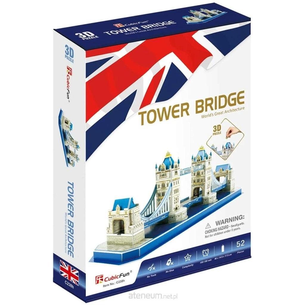 PUZZLE 3D TOWER BRIDGE, to pasjonująca zabawa dla dzieci oraz kolekcjonerów architektury z różnych stron świata. W opakowaniu znajduje się 52 el. puzzli, wykonanych ze specjalnego materiału przypominającego piankę. Puzzle są ponumerowane, ponacinane i umieszczone na arkuszach. Wystarczy bez użycia siły wycisnąć element z arkusza i zmontować go zgodnie z dołączoną instrukcją, bez użycia kleju ani specjalnych narzędzi. Wielkość budowli po złożeniu 48 x 14,5 x 17,5 cm. Zalecany wiek dziecka 3+.