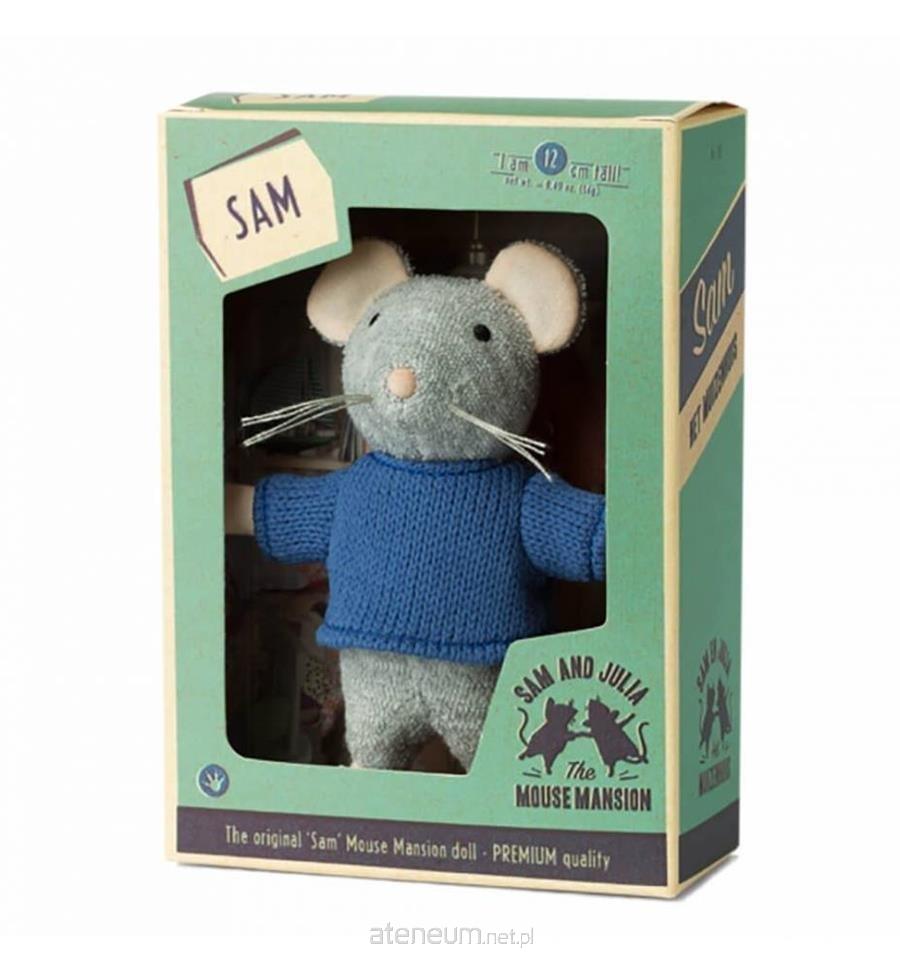 Sam - oryginalna maskotka z Mysiego Domku. Mierzy 12 centymetrów i ma niebieski wełniany sweterek.