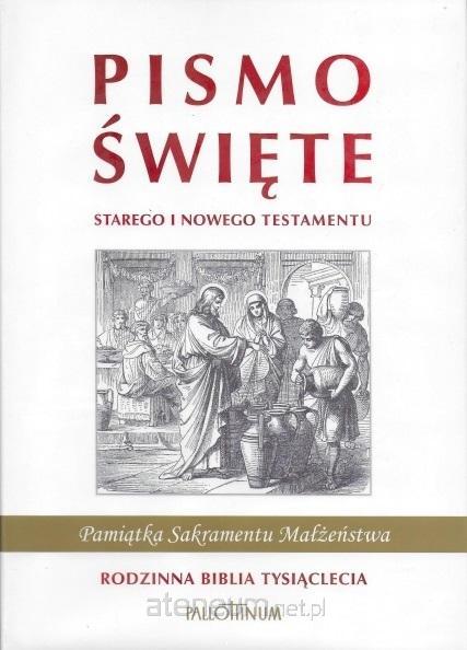 Biblia Rodzinna, będąca pamiątką sakramentu małżeństwa, zawiera tekst piątego wydania Biblii Tysiąclecia. Wydana została w dużym formacie i jest bogato ilustrowana grafikami Gustave'a Dor. Dodatkową zaletą tego wydania jest duża, czytelna czcionka. Jej rodzinny charakter podkreślają miejsca na wpisanie ważnych dat z życia członków rodziny. Zawiera również propozycje rodzinnych modlitw oraz obrzędów związanych z przyjęciem kolejnych sakramentów świętych. Biblia Tysiąclecia to najpopularniejsze narodowe wydanie Pisma Świętego. Zawiera jedyny polski tekst Pisma Świętego, zatwierdzony do stosowania w liturgii przez Konferencję Episkopatu Polski, przystępne komentarze - przypisy, mapy oraz podręczny słownik biblijny.