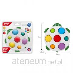 Na kolejnym pluszowym boku znajduje się kieszonka z pluszową piłeczką na sznurku. Element zachęca brzdąca do chwytania piłeczki oraz wkładania i wyjmowania jej z kieszonki.