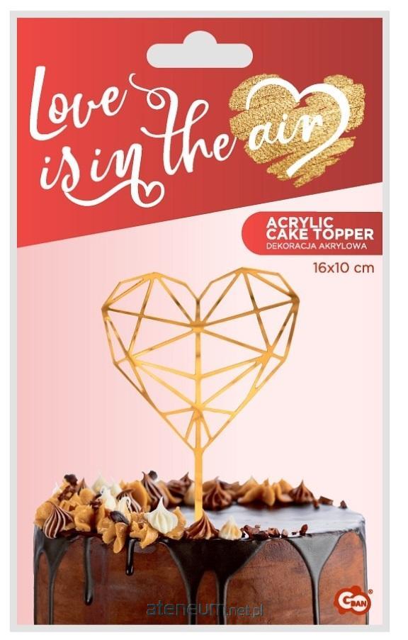 Dekoracja akrylowa na tort Diamentowe Serce, złota, 16x10 cm
