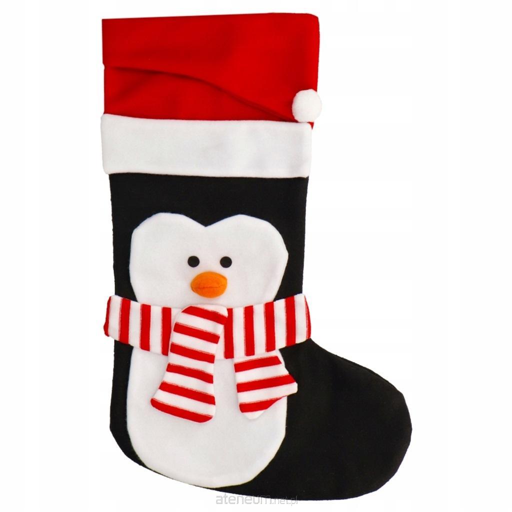 Dekoracyjna skarpeta świąteczna - but na prezenty. Wykonana z przyjemnego i miękkiego materiału. Górna część wykończona elementem 3D wyglądającym jak czapka Mikołaja. Z przodu tekstylna aplikacja z elementami 3D. Bardzo efektowna. Przypadnie do gustu przede wszystkim najmłodszym.