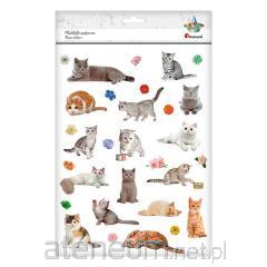 Naklejki papierowe koty, kwiaty 32szt.