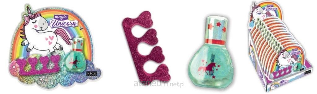 Mały zestaw do paznokci w blistrze, zawiera brokatowy lakier i separator do palców. Kosmetyki odpowiednie dla wrażliwej skóry małych dzieci.