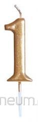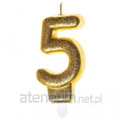 Świeczka urodzinowa Cyferka 5 w kolorze złotym brokatowym, rozmiar ok. 7 cm.