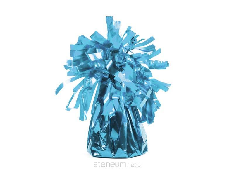 Ciężarek do balonów owinięty folią w kolorze błękitnym, wysokość ok. 7 cm, waga ok. 130 g.(1 op. / 4 szt.)