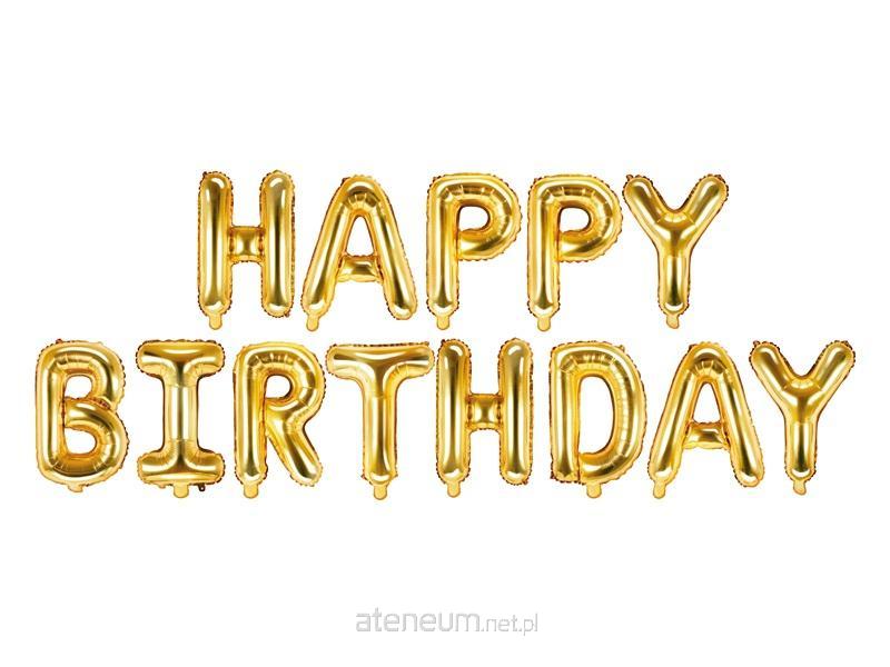 Balon foliowy metalizowany Happy Birthday w kolorze złotym, wymiary ok. 340 x 35 cm (134 x 14'').