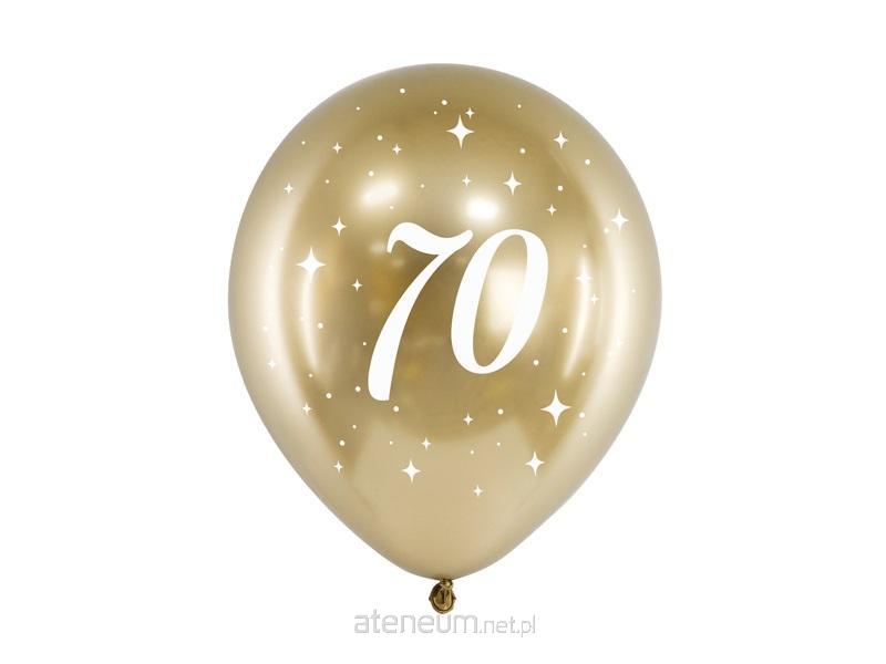 Balony Glossy w kolorze złotym z białym nadrukiem 70, średnica 30 cm.(1 op. / 6 szt.)