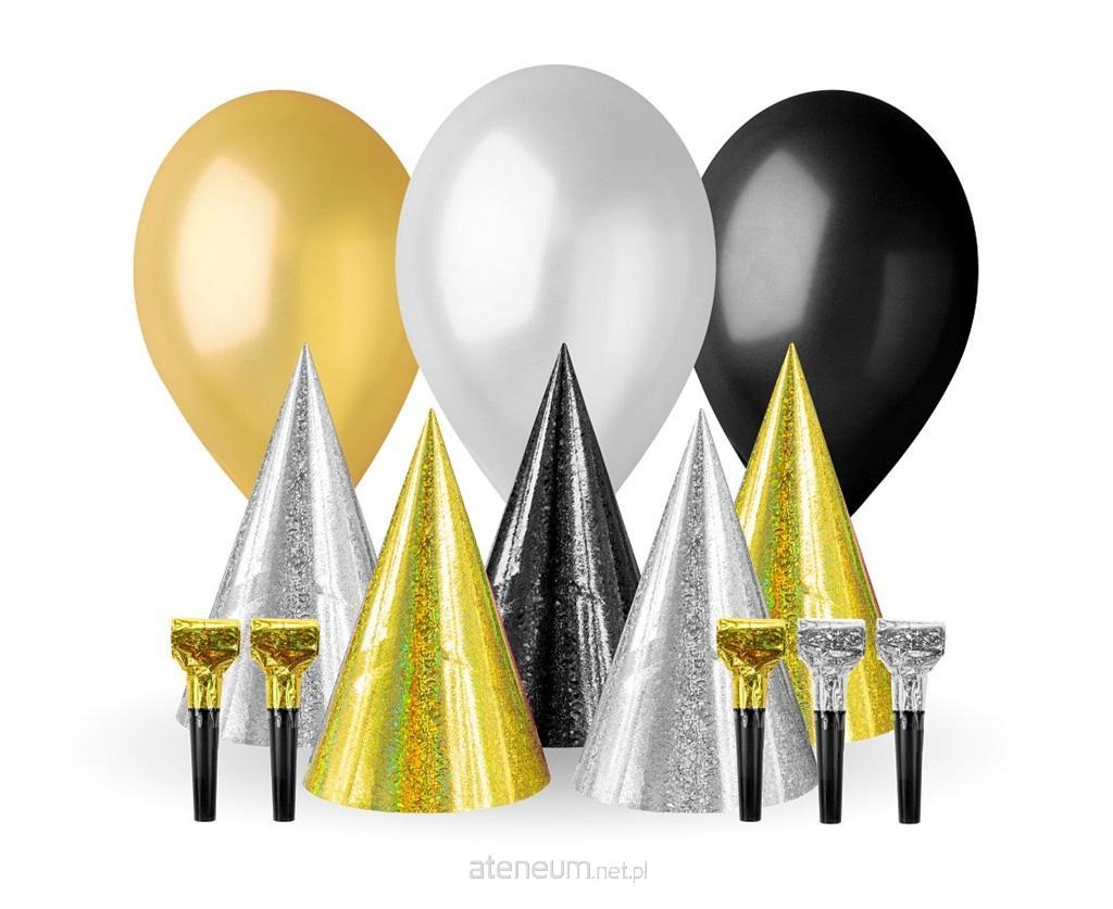 Zestaw Bal Karnawałowy, złoto-czarno-srebrny, 13 elementów