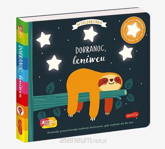 Dobranoc leniwcu, to książeczka ze światełkami z serii Wieczorynka, w której główny bohater nie chce spać, więc szuka zwierzątek, które będą chciały się z nim pobawić. Niestety jest noc i mała małpka, panda, jaguar i tukan śpią grzecznie wtuleni w rodziców. W końcu zmęczony leniwiec zasypia przy mamie, a gwiazdki mu przyświecają.