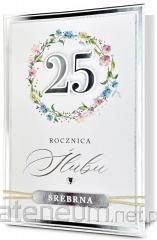 Kartka okolicznościowa z okazji rocznicy Ślubu o treści: Abyście dalej szli przez życie, Trzymając się mocno za ręce. Zawsze uśmiechnięci, zawsze razem, Zawsze pewni swoich uczuć. Niechaj los Wam sprzyja, Niosąc powodzenie.