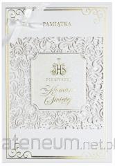 Kartka okolicznościowa z okazji Pierwszej Komunii Świętej o treści: Dziś dla Ciebie radość niesłychana, bo idziesz z miłością na spotkanie Pana. Pamiętaj, że on Cię zawsze usłyszy, czy modlisz się głośno, czy w głębokiej ciszy. Na Pamiątkę Pierwszej Komunii Świętej Życzenia wielu łask Bożych.