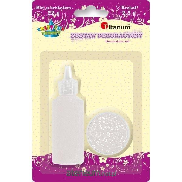 Zestaw klej z brokatem 22g + brokat 1mm 2,5g w słoiczku biały