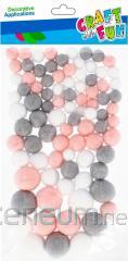 Zawartość opakowania: 90 szt. pomponów o różnych średnicach.
