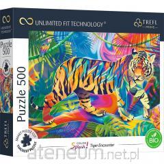 Drewniane puzzle 3D w kształcie tygrysa, wykonane z wysokiej jakości sklejki. Opakowanie zawiera pędzelek oraz farby akrylowe, którymi można pomalować model po złożeniu. Zestawy mają postać arkuszy z wstępnie wyciętymi i ponumerowanymi elementami, które przed montażem należy oddzielić od wykroju, a następnie połączyć bez użycia kleju, zgodnie ze szczegółową instrukcją dołączoną do opakowania. Zabawka edukacyjna pobudzająca dziecięcą wyobraźnię i kreatywność.