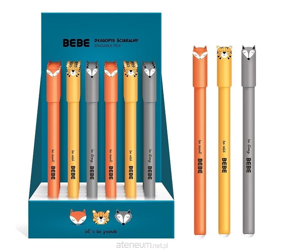 Długopis ścieralny zamykany na skuwkę z uszkami zwierzaków.