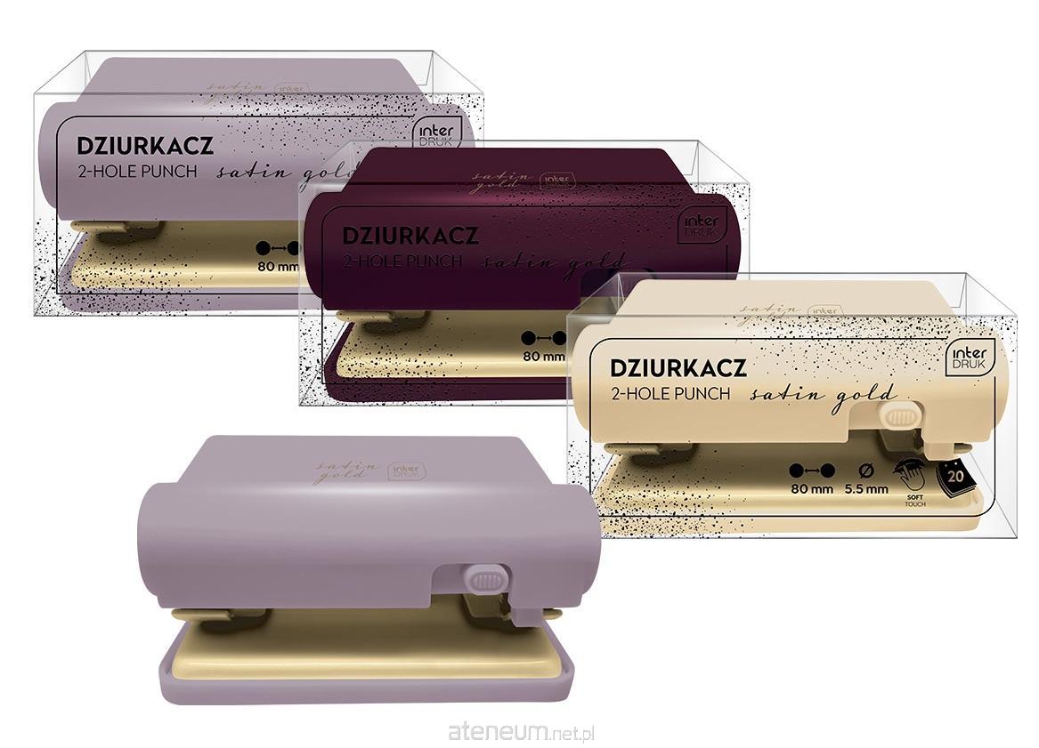 Dziurkacz o miękkiej w dotyku, satynowej obudowie, przyciąga wzrok detalami w kolorze matowego złota, dziurkuje do 20 kartek. Średnica otworów: 5.5 mm. Wyposażony w wysuwany ogranicznik formatu i blokadę położenia dźwigni.