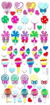 53 brokatowe naklejki piankowe, rozmiar naklejki ok. 3 cm, grubość 2 mm.