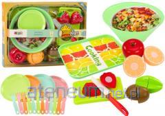 Zestaw "Szef kuchni" rozwija wyobraźnię, kreatywność oraz motorykę dziecka. Zabawa zestawem daje możliwość poznania owoców, warzyw i przekąsek, zachęca do gotowania oraz nauki o zdrowym odżywianiu. Wszystkie elementy wykonane są z drewna, pokryte bezpieczną dla dzieci farbą. Elementy połączone magnesem.