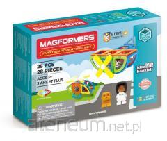 MAGFORMERS INSPIRE 30 to klocki z wbudowanymi silnymi magnesami neodymowymi, które zawsze się przyciągają. Wystarczy zbliżyć do siebie ściankami dwa klocki, a one natychmiast ze sobą się połączą. Za pomocą klocków wzorowanych na kształt figur geometrycznych można zbudować wspaniałe trójwymiarowe budowle. W zabawie można korzystać z dołączonej do zestawu instrukcji lub innych przykładów zamieszczonych na stronie producenta lub własnej wyobraźni. W skład zestawu wchodzi: 12 trójkątów; 18 kwadratów.