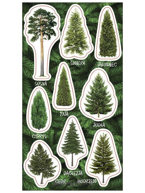 Zestaw naklejek do ozdoby zeszytów, albumów, listów, pocztówek ...9 naklejek dzrewa iglaste z opisami. POLECANE DO SZKÓŁ