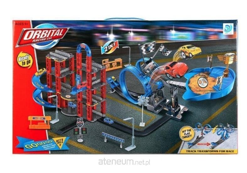 Tor z parkingiem to niekończąca się zabawa w wyścigi samochodowe. Od teraz dziecko wraz ze swoimi przyjaciółmi może stanąć do fascynującej rywalizacji. Podczas zabawy autka mogą ścigać się z bramki startowej osiągając prędkość dzięki specjalnej wyrzutni. Celem wyścigu jest wylądowanie na arenie i uderzeniu we flagę. Wygrywa ten, kto pierwszy zbije flagę i wyląduje na mecie. Trafienie autkiem we flagę pozwala transformować pionową pętlę. Montaż toru wyścigowego jest łatwy dzięki zatrzaskom i spinkom oraz nie potrzebujemy śrubek i dodatkowych narzędzi do uruchomienia toru. W zestawie znajdują się także akcesoria, które pozwalają poczuć sportowego ducha tj. chorągiewki, złoty puchar, stacja paliw, sygnalizacja, oświetlenie i znaki drogowe. Tor wyścigowy rozwija wyobraźnię dziecka oraz pozytywnie pływa na koordynację wzrokowo-ruchową.