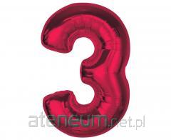 Balon foliowy cyfra 3 czerwona Smart 92cm