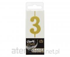 Świeczka piker B&C cyfra 3 metaliczna złota 9,5cm