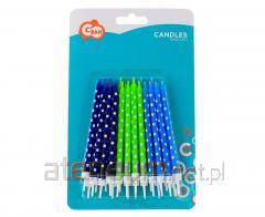 Świeczki magiczne pastelowe, 10/10 Magiczne świeczki, które po zdmuchnięciu zapalają się kilka razy. Opakowanie zawiera 10 kolorowych świeczek. 5 kolorów w opakowaniu: niebieski*2, zielony*2, żółty*2, różowy*2, fioletowy*2. Opakowanie zawiera również podstawki na każdą świeczkę. UWAGA - Ze względu na fakt, iż świeczki nasączone są płynem powodującym kolejny zapłon mają lekko szarawy odcień.