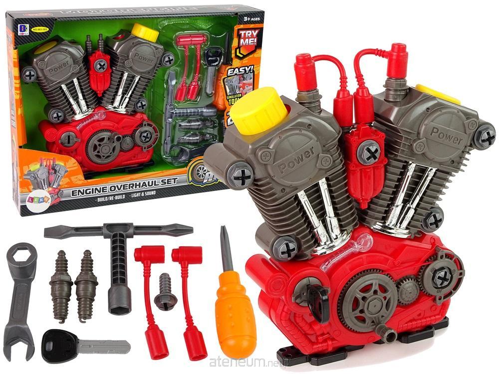 Silnik Samochodowy Dla Małego Mechanika Do samodzielnego złożenia Światła i Dźwięki ! Rozkręć silnik ! Zabawka przeznaczona dla małego mechanika samochodowego. Znakomicie rozwinie zdolności manualne oraz zapozna dziecko z elementami wchodzącymi w skład prawdziwych silników. Pozwoli na zrozumienie zasad działania silnika. Dodatkowo zabawka wyposażona jest w szereg efektów świetlnych i dźwiękowych co uatrakcyjni zabawę ! Silnik posiada możliwość rozkręcania i skręcania za pomocą dołączonych narzędzi dowolną ilość razy ! Całość jest prosta w obsłudze dlatego z pewnością spodoba się małym majsterkowiczom już od 3 roku życia. Wszystkie elementy zestawu wykonane są z wysokiej jakości plastiku przez co zestaw jest niezwykle trwały i z pewnością posłuży przez długi czas ! Zalety zabawki: - cały silnik wykonany jest z plastiku - ruchome tłoki - realistyczne dźwięki - możliwość obserwacji pracy trybów - silnik można rozkręcać Zestaw zawiera - silnik - kluczyk do odpalania - świece zapłonowe - gumowy przewód zapłonowy - śrubokręt gwiazdkowy - 3w1 klucz nasadowy + śrubokręt płaski i gwiazdkowy - 2w1 klucz płaski + oczkowy - śruba Wymiar silnika 25 x 26 x 7cm Zestaw bardzo estetycznie wykonany, zapewne zostanie zauważony przez niejednego tatę, dziadka mechanika ale Panowie pamiętajcie jest to zabawka dla dziecka : ) Silnik zapakowany w estetyczne, oryginalne opakowanie idealnie nadające się na prezent.