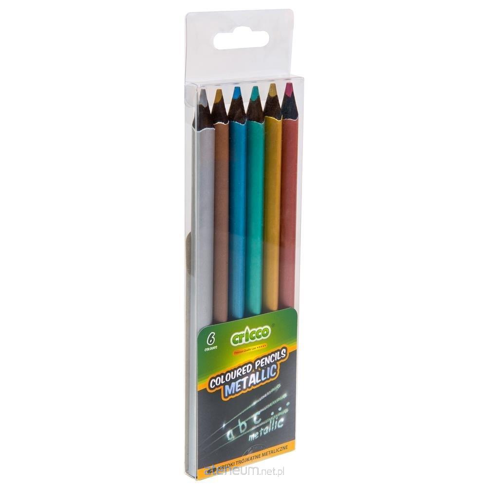 Grube kredki ołówkowe wykonane z czarnego drewna. Idealne dla dzieci, o trójkątnym kształcie wyrabiającym pewny uchwyt. W opakowaniu 6 wyrazistych metalicznych kolorów. Kredki są zatemperowane w przezroczystym, sztywnym etui z zawieszką.