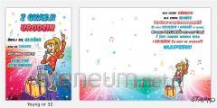 Zaproszenie wykonane za grubym 350g papierze, dodatkowo uszlachetnione lakierem UV ( przypomina sztywną kartę ) Zastosowana perforacja, dzięki której można oderwać kupon. Z drugiej strony zaproszenia, szablon do wypełnienia długopisem lub piórem.