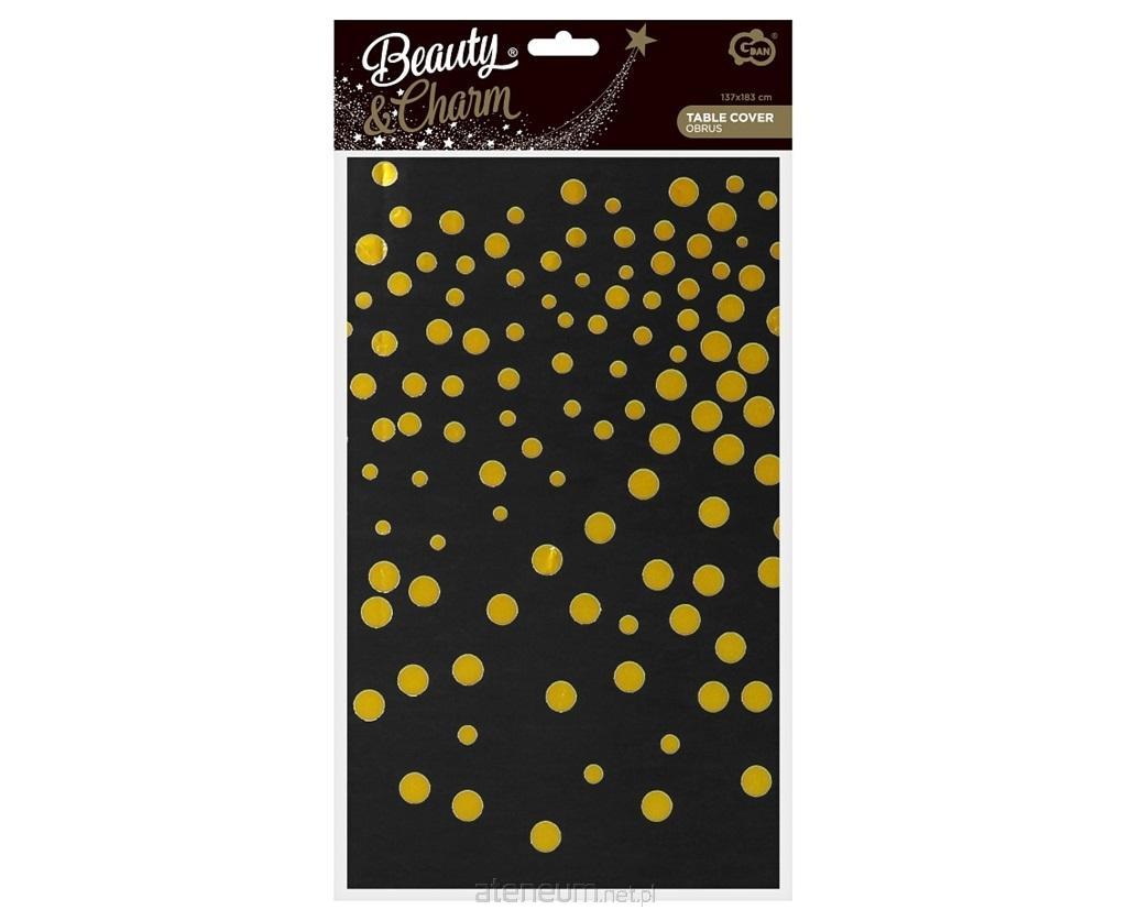 Obrus foliowy B&C złote groszki, czarny 137x183cm