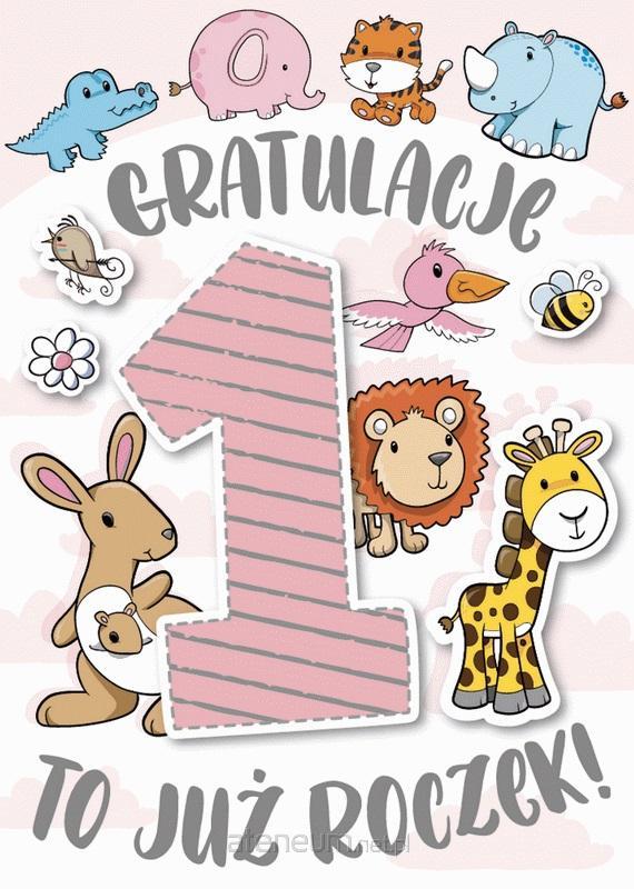 Karnet B6 brokat z kopertą Urodziny 1 dziewczynka