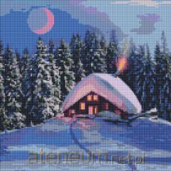 Diamentowa mozaika - Zaśnieżona chata 40x40cm