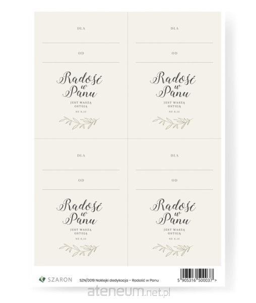 Cztery naklejki na arkuszu, można wkleić i wypisać dedykację w książce.
