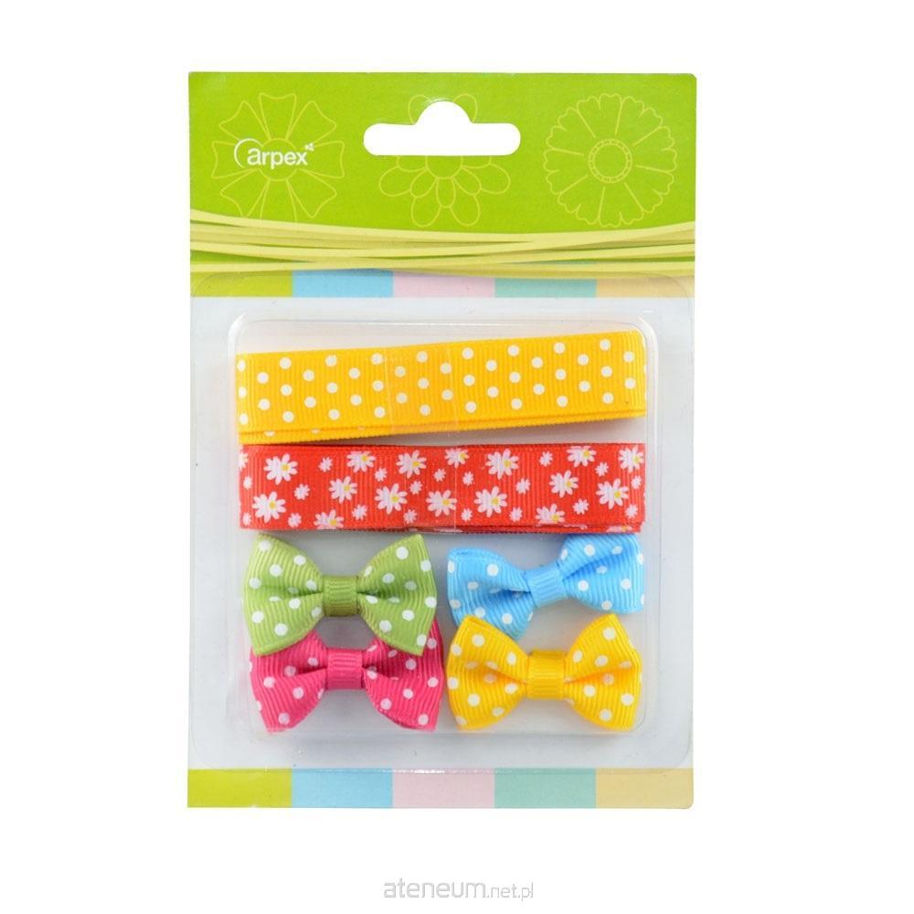 Kolorowy zestaw do zdobienia. Wymiar wstążki: 1,5x90 cm; wymiar kokardki: 2x3,5 cm.
