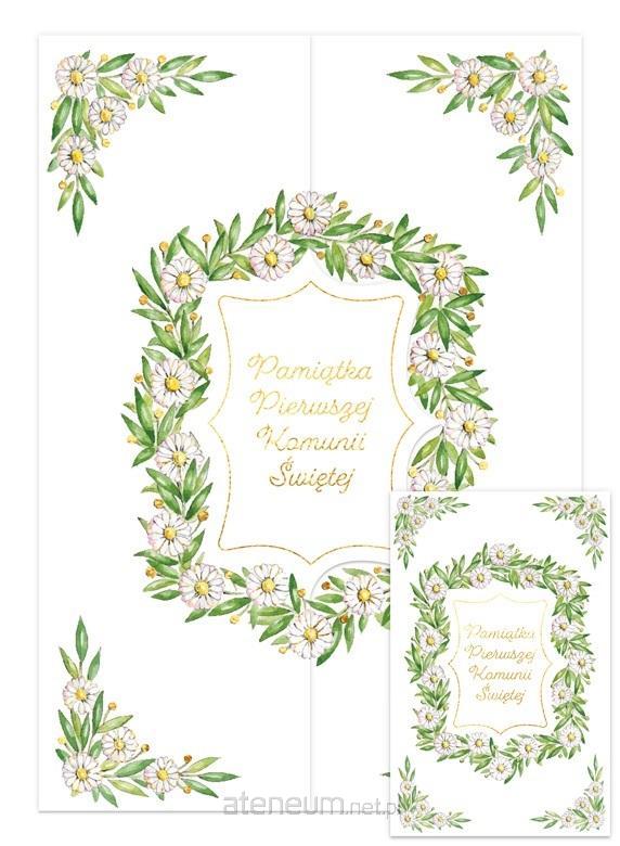 Złocony rozkładany karnet w formacie A5, teksy życzeń w środku. Wydrukowany na wysokiej jakości papierze. W zestawie bilecik do prezentu oraz koperta.