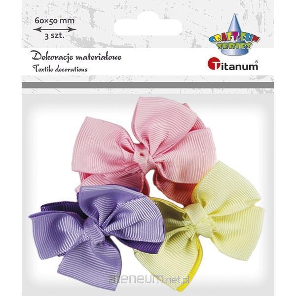 Aplikacje materiałowe kokardki 60x50mm rypsowe fioletowe, różowe, żółte 3szt.