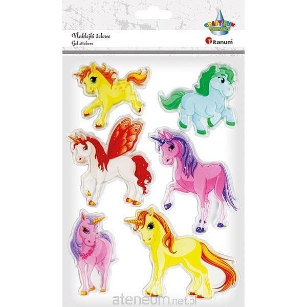 Naklejki żelowe kucyki, jednorożce, 6 szt.