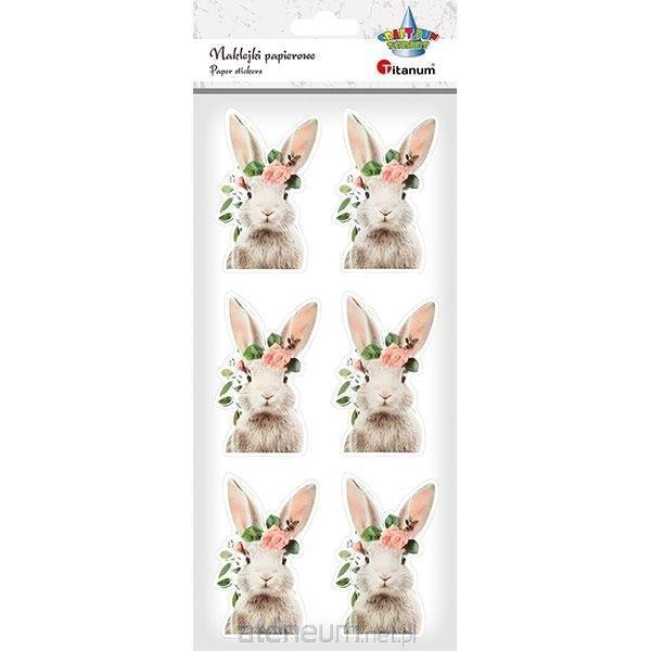 Naklejki papierowe: zając - popiersie z kwiatami na głowie, 6 szt.