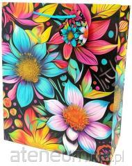 Torebka ozdobna matowa 26x32x12cm Kwiaty neon