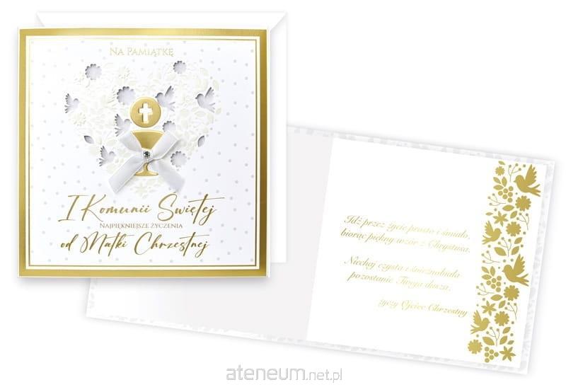 Kartki z serii Primus, to kartki najwyższej jakości, pięknie zdobione m.in złotą lub srebrną folią, tłoczeniami, czy wycinkami laserowymi. Idealne na najważniejsze okazje w życiu, takie jak ślub, komunia. W środku każdej kartki znajdują się dobrane do okazji życzenia, a do kartki dołączona jest dopasowana koperta. Cechy szczególne: wielkość: niestandardowa, prostokątna, kwadratowa, zdobienia: dekoracje ze złotej folii, doklejane koraliki, tłoczenia koperta: dopasowana w komplecie, wnętrze kartki: życzenia w środku, okazja: komunia