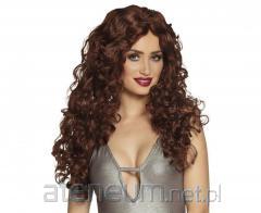 Peruka CHIQUE, falowane brązowe włosy Długość: 58 cm Kolor: brązowe. Długie falowane brązowe włosy z grzywką. Materiał: 100% poliester. Peruka posiada siateczkę, która stabilnie utrzymuje ją na włosach.