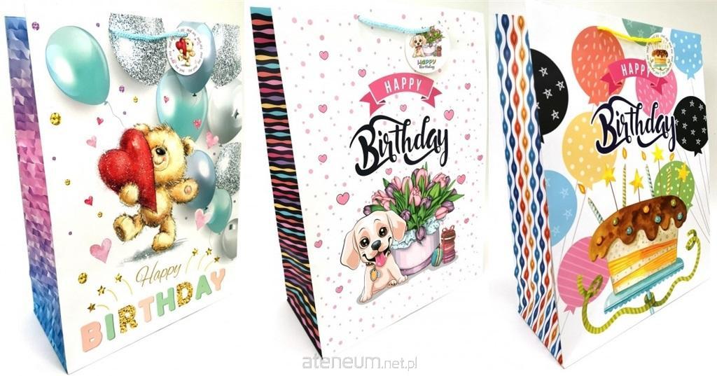 Torebka prezentowa urodzinowa L szerokie dno mix