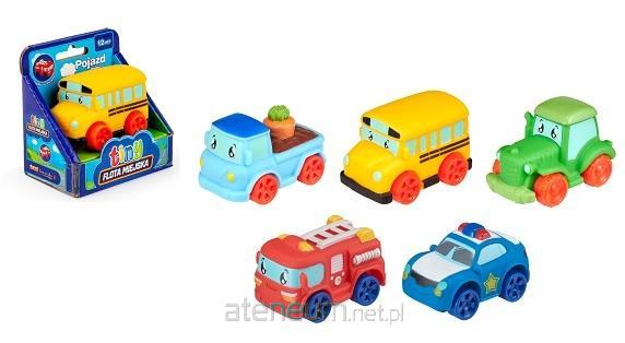 w 8 różnych wzorach, sprzedawanych oddzielnie. W serii znajdziemy: czerwoną wyścigówkę, niebieską wyścigówkę, wóz strażacki, ambulans, śmieciarkę, ciężarówkę budowlaną, samochód policyjny oraz helikopter. Każdy z pojazdów pasuje do pozostałych zabawek z serii Flota Miejska Tiny: Laweta z autkiem, Zjeżdżalnia z samochodzikiem oraz Garaż Deluxe.